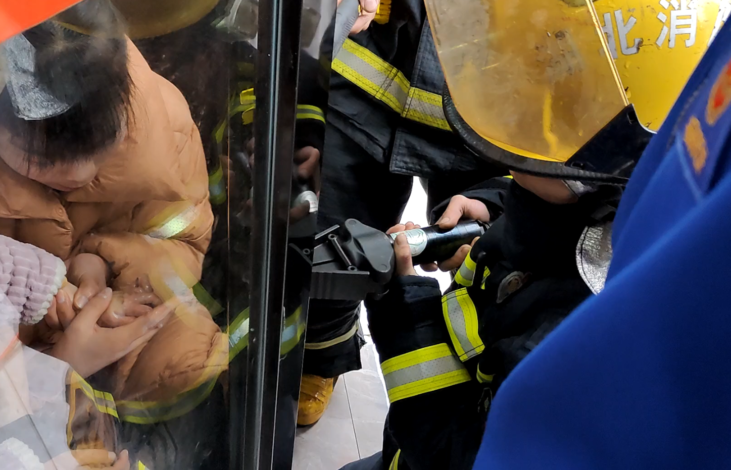 了解情况后,消防救援人员迅速展开施救行动。一名消防队员小心翼翼地利用液压剪扩大玻璃门缝隙,另一名消防队员配合用撬棍做辅助,防止女孩遭受二次伤害,家长则扶住小女孩的手,消防员告知家长等门缝被扩大后,迅速从扩张处挪出来。经过3分钟的紧张救援,成功解救出小女孩被卡的手。据了解,孩子被卡左手的手腕轻微红肿并无大碍。