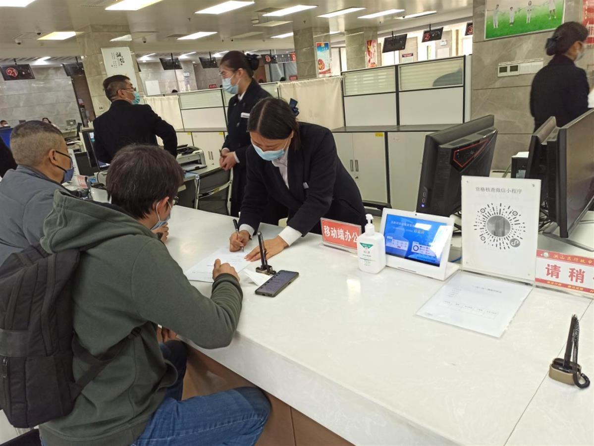 当天临近午休时间,洪山区政务服务中心房管窗口来了一位办事市民。他径直走到窗口前,将身份证递给工作人员。当被询问需要办理什么业务时,他却低头不语,用手不停地比画。工作人员瞬间明白,当即安排专人“特事特办”:拿出笔和纸,耐心地与他进行文字交流。