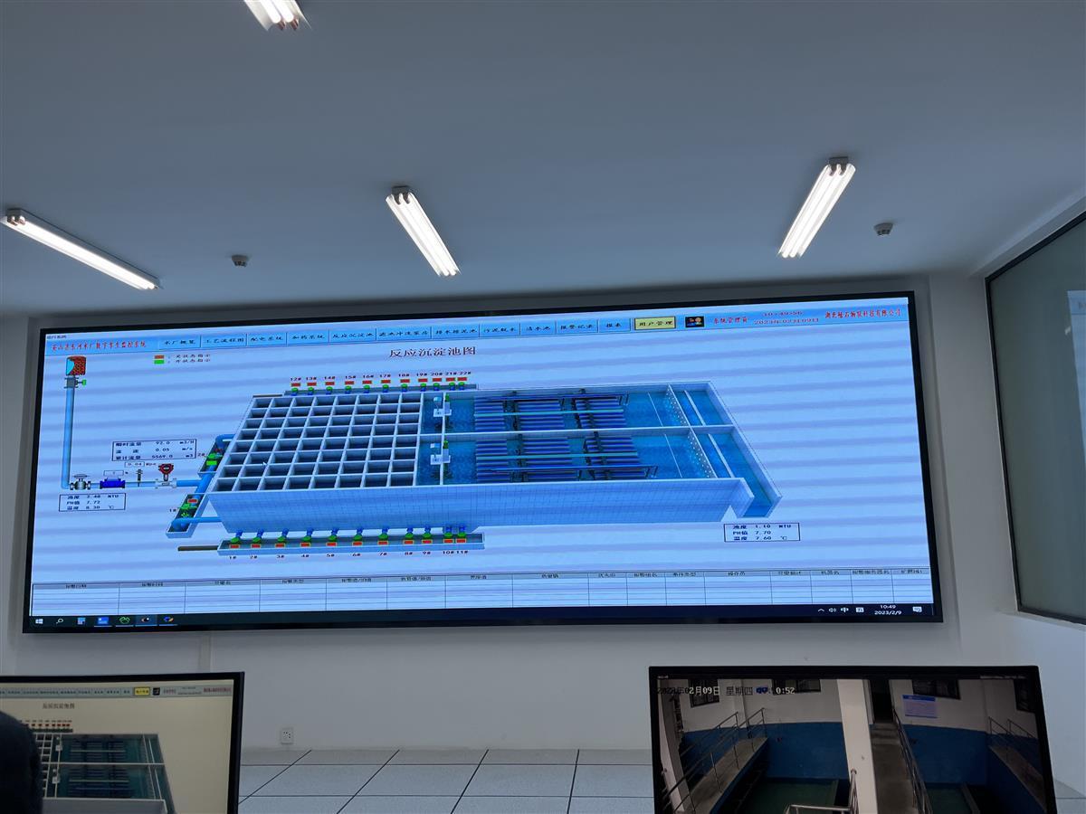 一块数字大屏上,不仅有水厂全景图、工艺流程图,还有沉淀池、滤池等部位的实时数据,水浊度、PH值、温度、液位等情况一目了然。