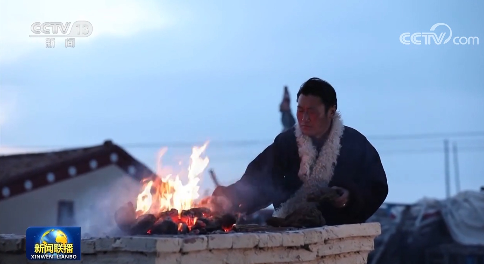 在青海海北、玉树等地,藏家儿女们换上节日盛装,点燃松柏枝,撒上青稞面,共同祝愿新的一年五谷丰登、吉祥如意。