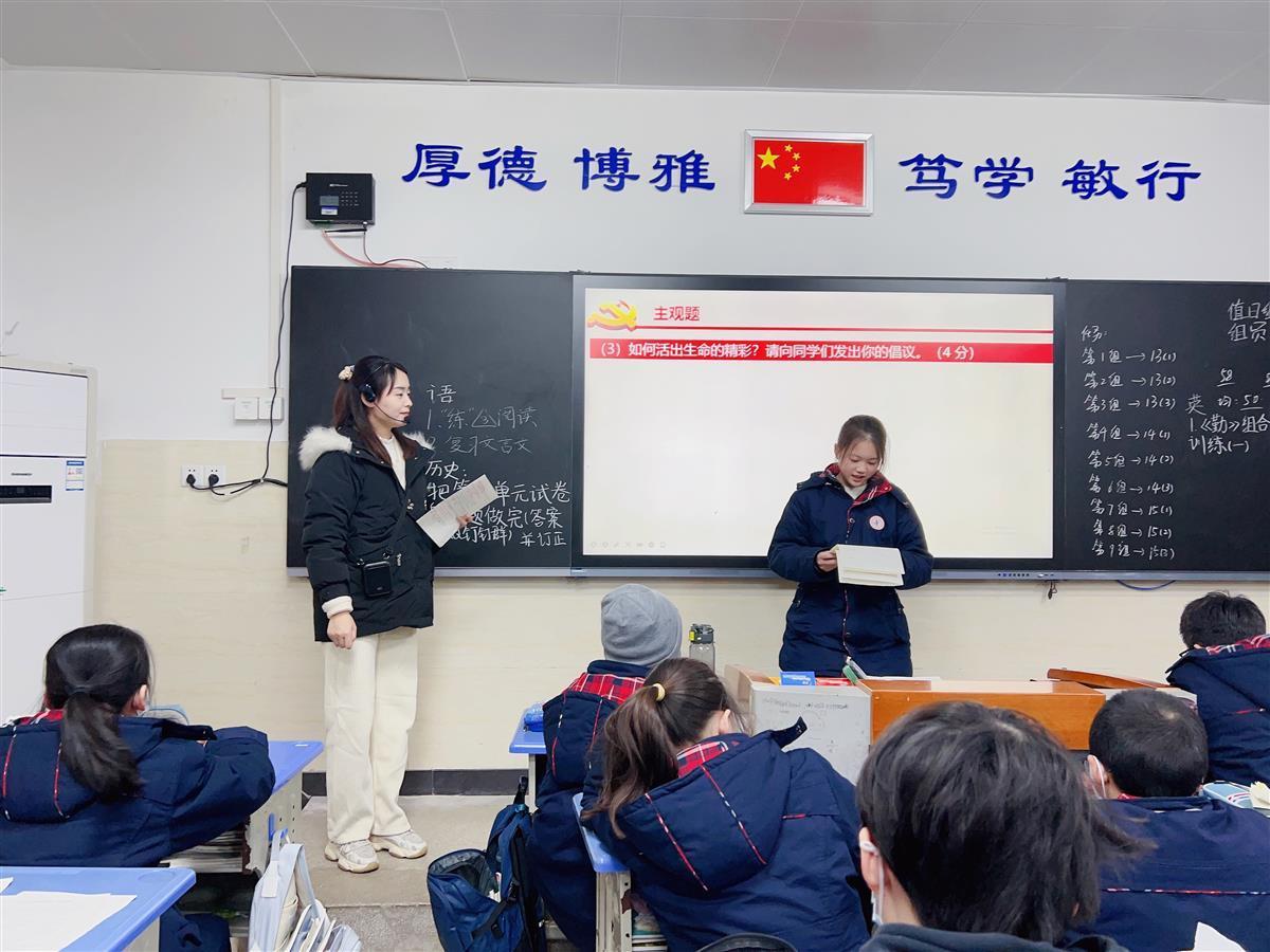 2022年9月以来,华师第一附属中学初中部道法教师吴文焕的课堂前5分钟里,学生们自编自播“时事新闻播报”,涵盖经济、政治、科技、社会、生态等各领域主题,紧跟国际国内大势,政治认同、道德修养、责任意识等核心素养不断提升。