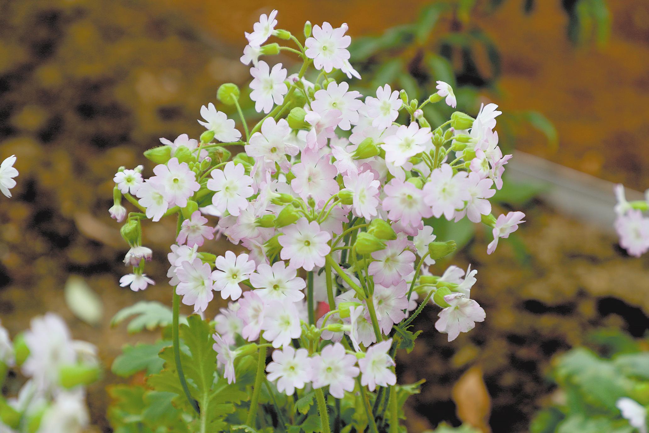记者在武汉植物园花境大道看到,80株陕西羽叶报春已开启报春之旅,成簇成簇开放。它的花瓣纤薄轻盈,繁茂的花朵密密匝匝簇拥在一起,粉白的娇嫩颜色如春天一样富有浪漫气息,风动花摇。它的叶片全部开裂,像羽毛一样轻柔飘逸,整个植株充满轻盈感。虽然个头不高,但是超高的颜值让人眼前一亮。