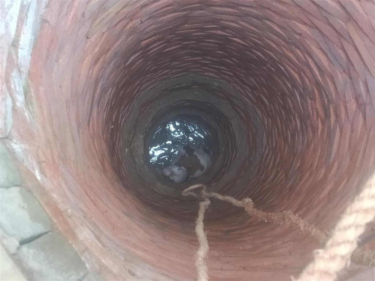小牛犊掉入10米深水井