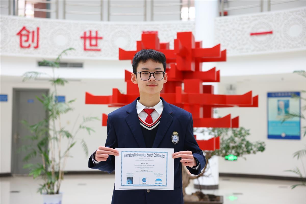 华中师范大学第一附属中学(简称华师一附中)高三学生付熙哲,就是这样一位“酷boy”。近日,他收到了国际天文学联合会小行星中心的确认证书,小行星编号为2021 RO59。