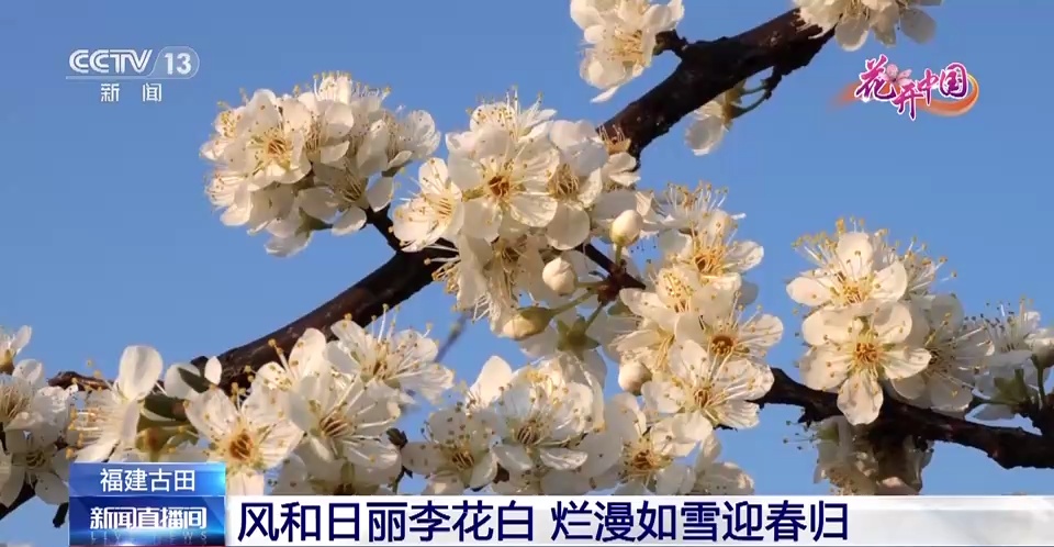 日前,在福建省宁德市古田县的富达村,五千多亩的李花竞相绽放。