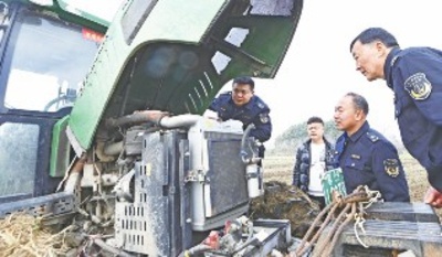 图2:2月24日,孝南区农村综合执法人员对农机专业合作社农机进行安全检查。全媒体记者李文勇 通讯员杨辉 摄