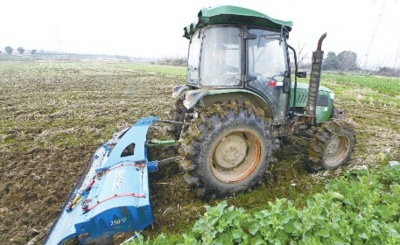 图1:2月24日,在孝南区毛陈镇同欢村田间,农业手驾驶旋耕机在作业。