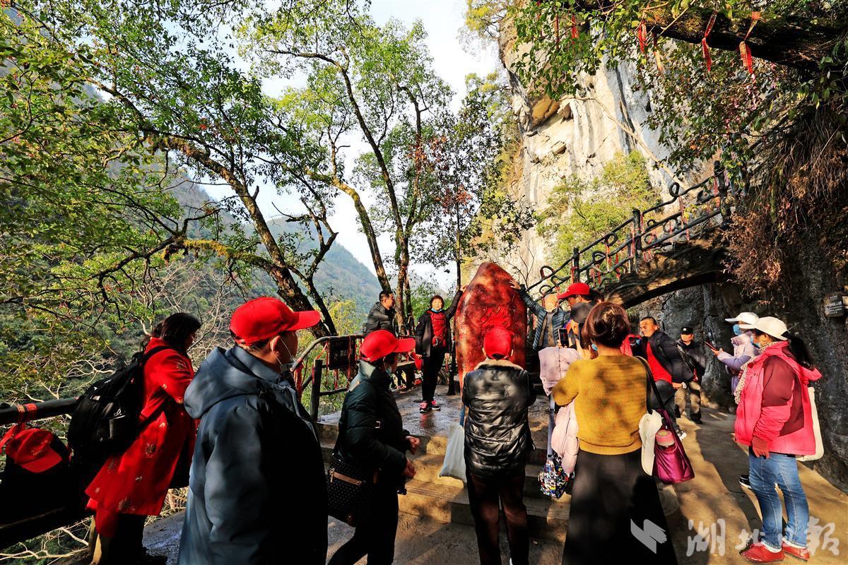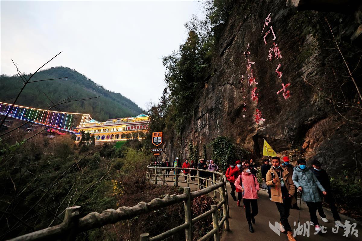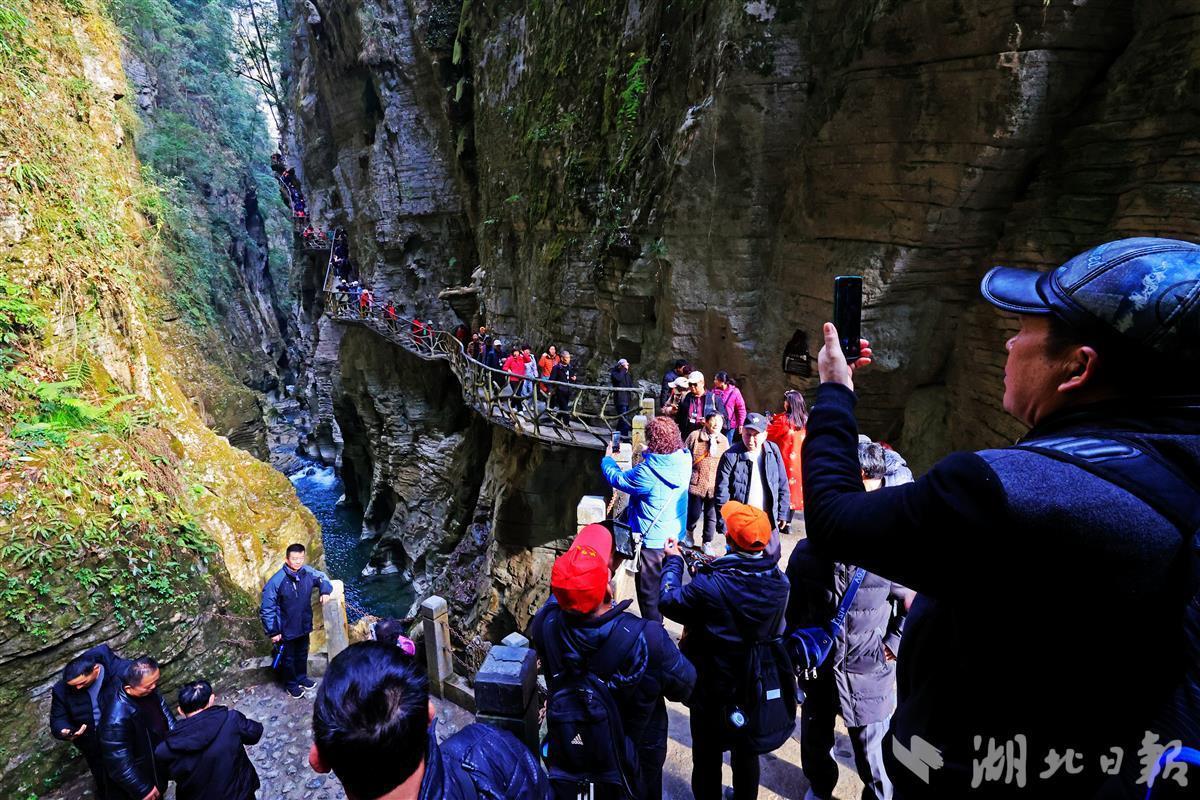 湖北日报讯(记者蔡俊、通讯员王丹、黄妮)“一直想来恩施,今天终于如愿,这里风光太美了,不虚此行!”2月24日,恩施地心谷景区,福建游客周女士站在玻璃天桥上,不停拍照。