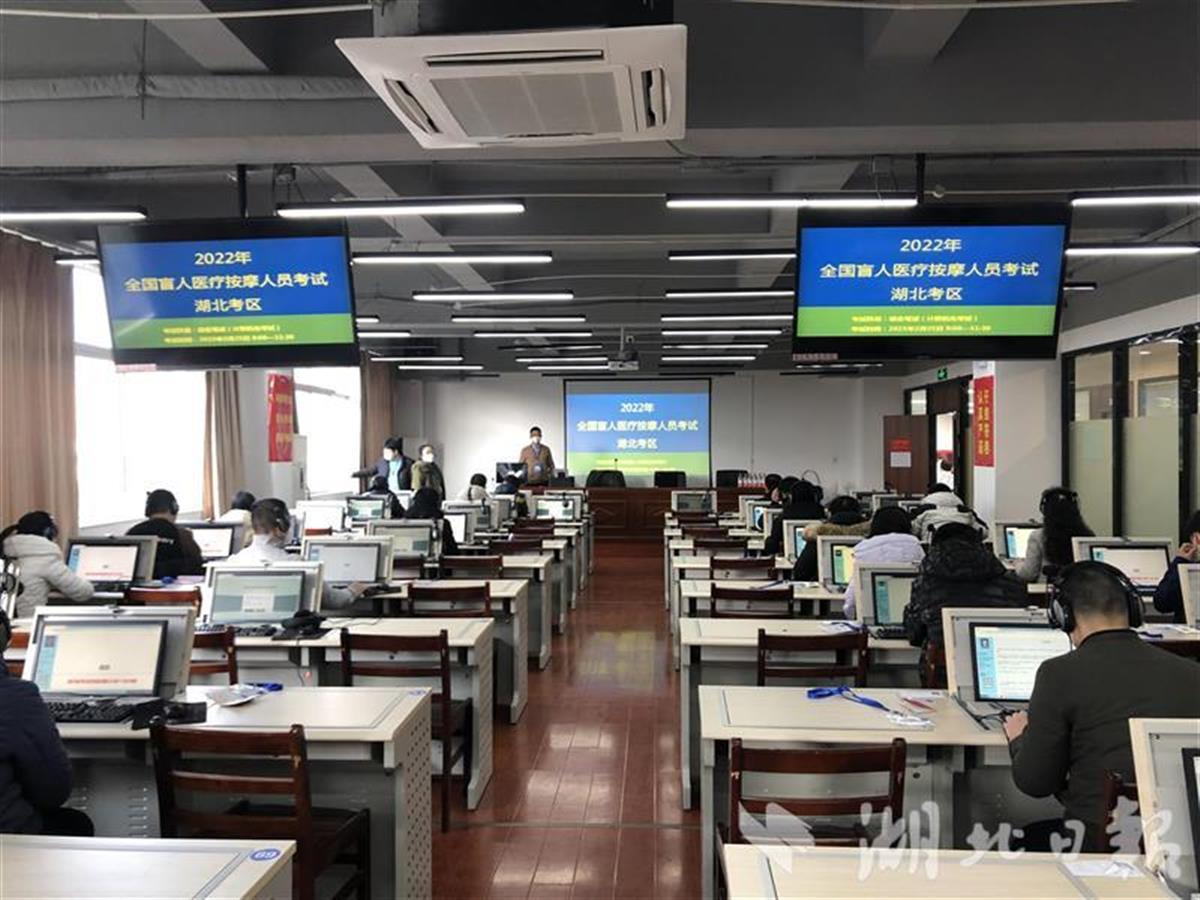 据介绍,2022年全国盲人医疗按摩人员考试因受疫情影响延迟,最终确定考试时间为2023年2月25日、26日,湖北考区考试于25日举行。国家中医药管理局、省卫健委和省残联相关领导到考试现场进行巡视指导。