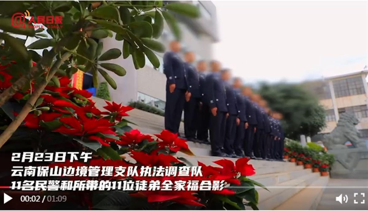 2月23日,云南保山边境管理支队。合影现场,11名民警带着11位徒弟,侧身敬礼,不见正脸,第一排11名民警胸前挂满了勋章。教导员表示,队里每个战友都至少荣立了1次二等功。功勋背后,是他们在禁毒一线无数次的冲锋。(据2月25日人民网)