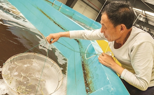 目前,基地在去年12月投放的第一批虾苗已接近完成第一阶段35天至40天的养殖,继而转入到成虾池中继续生长,最快4月就能上市。“虾苗刚刚来到基地时,每只身长只有2毫米。就是通过基地模拟的海洋环境和科学喂养,很快实现正常生长。”吴育林说。