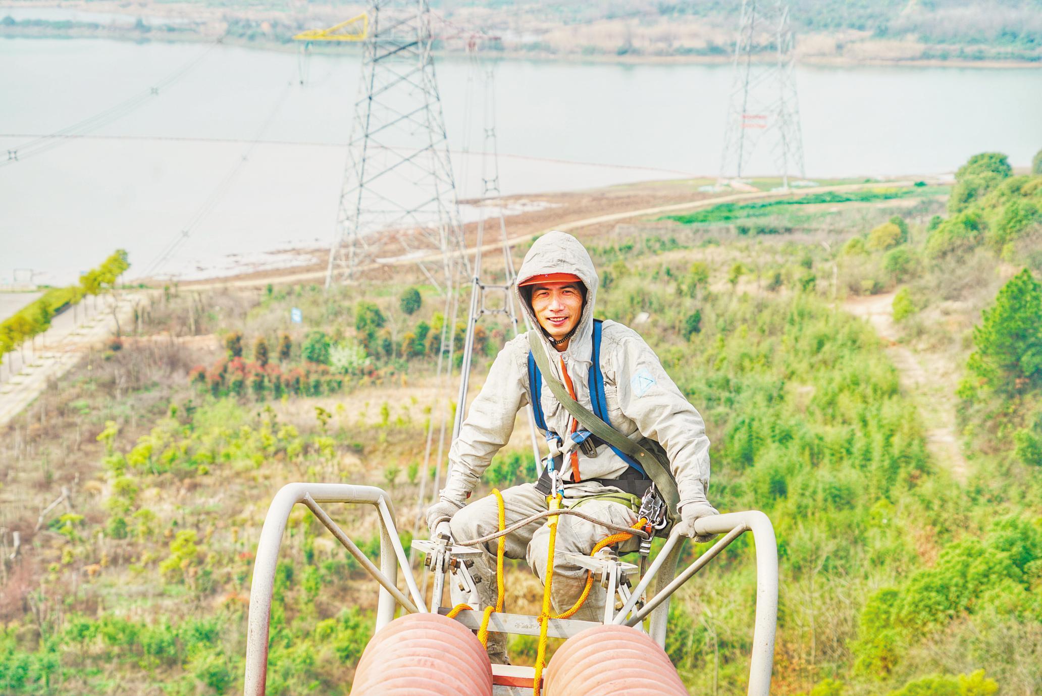 在几十米的高空中,他穿戴着10多斤重的特制金属屏蔽服,敏捷地穿梭于上百万伏特高压之间,道道电弧在指尖闪烁,“嗞嗞”电流声在耳边萦绕。从地面仰望,他犹如一名舞者,在塔尖和银线之间舞动。