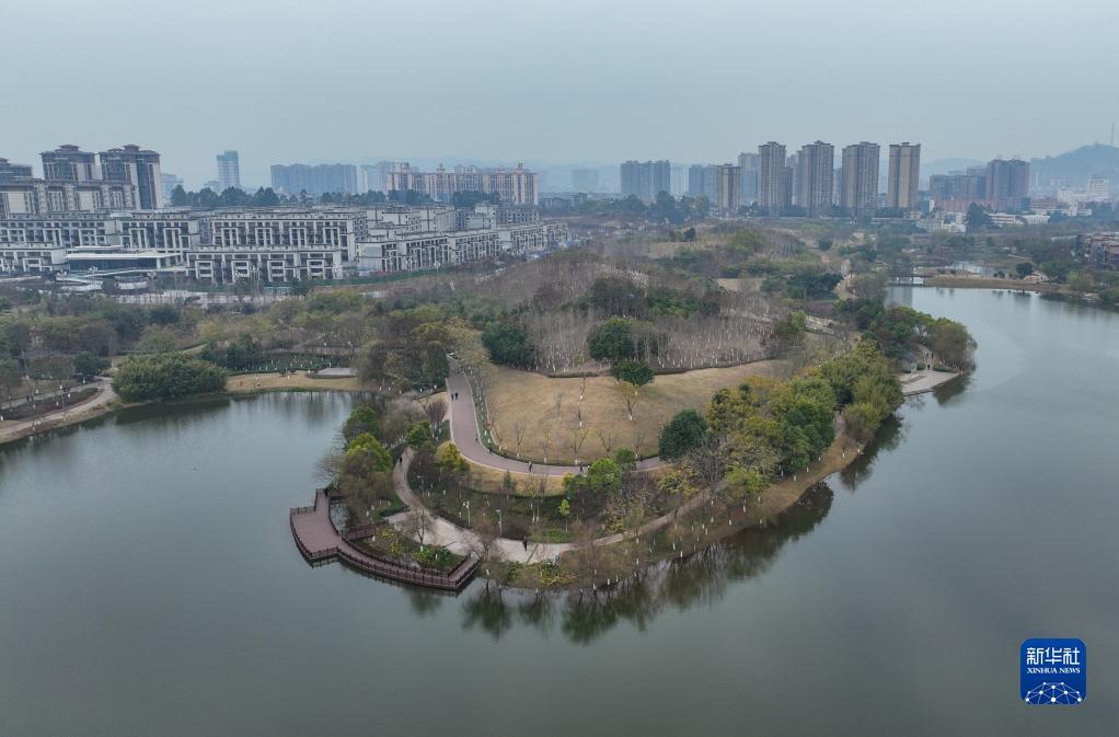 这是2月26日在眉山市仁寿县拍摄的城市湿地公园(无人机照片)。