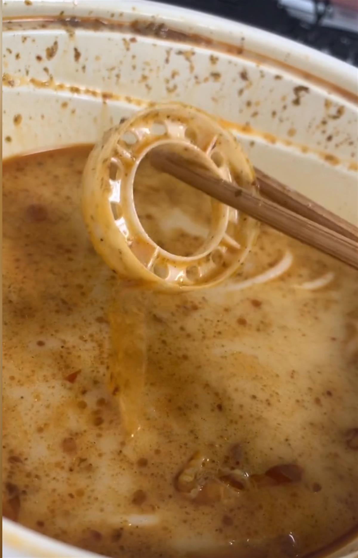 刘先生吃米线外卖吃出胶带卷(图源:受访者)