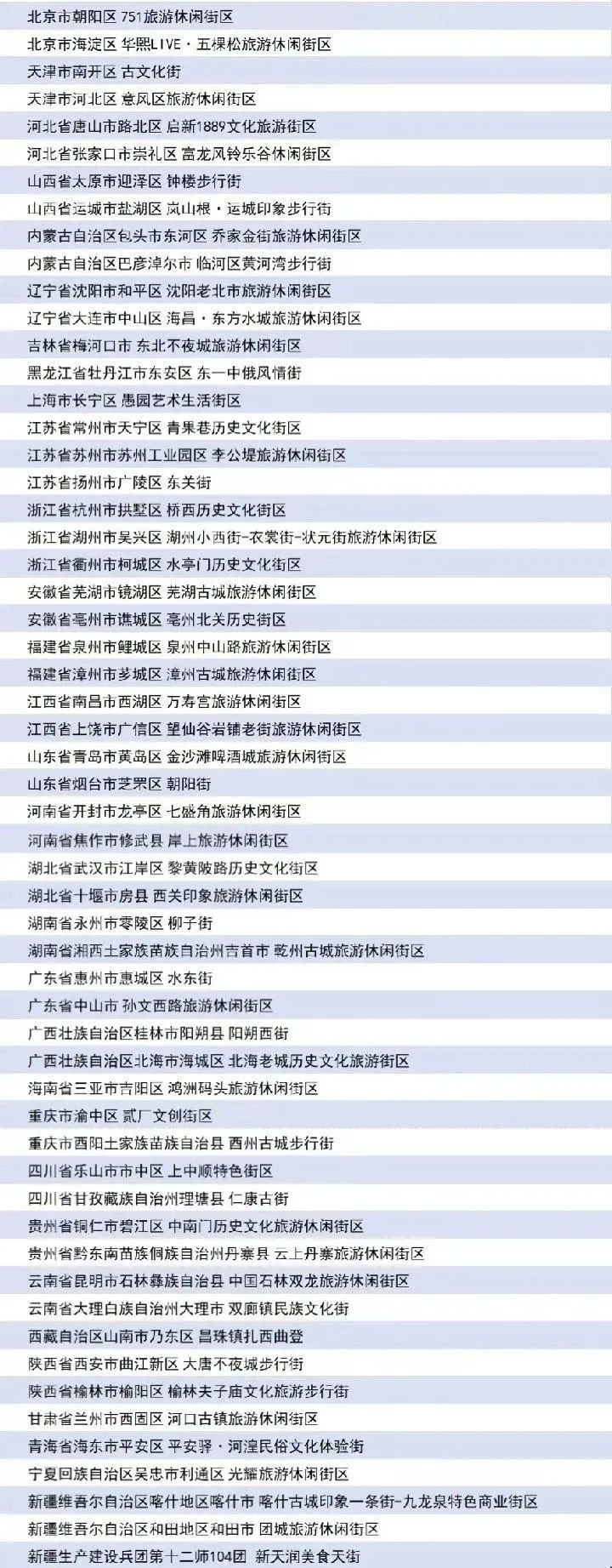 文化和旅游部3月1日公布第二批国家级旅游休闲街区名单。根据中华人民共和国旅游行业标准《旅游休闲街区等级划分》(LB/T 082-2021),经有关省(区、市)文化和旅游行政部门推荐,文化和旅游部按程序组织认定并完成公示,北京华熙LIVE·五棵松旅游休闲街区等57家单位被确定为第二批国家级旅游休闲街区。