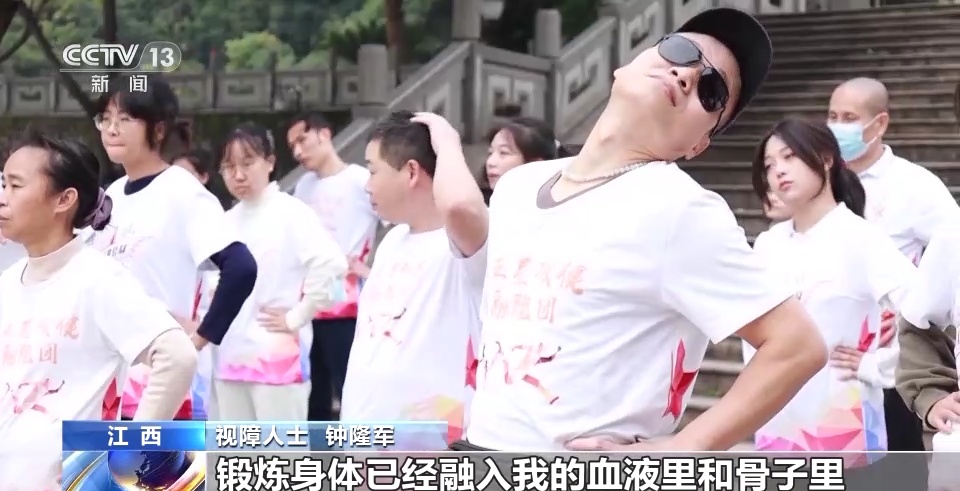 视障人士 钟隆军:锻炼身体已经融入我的血液里和骨子里。自从胡亮老师组织了这么一个公益活动,我第一次跑,第二次跑,从那以后,我就像上了瘾一样。