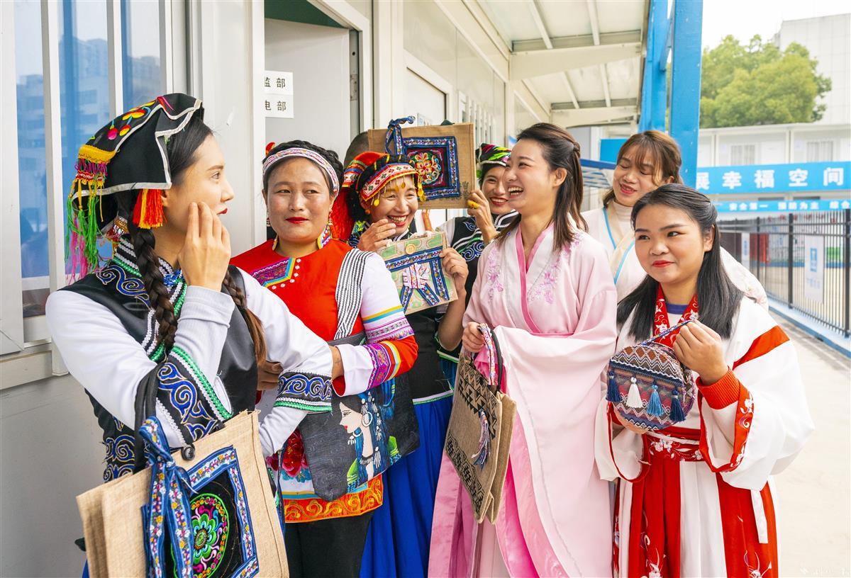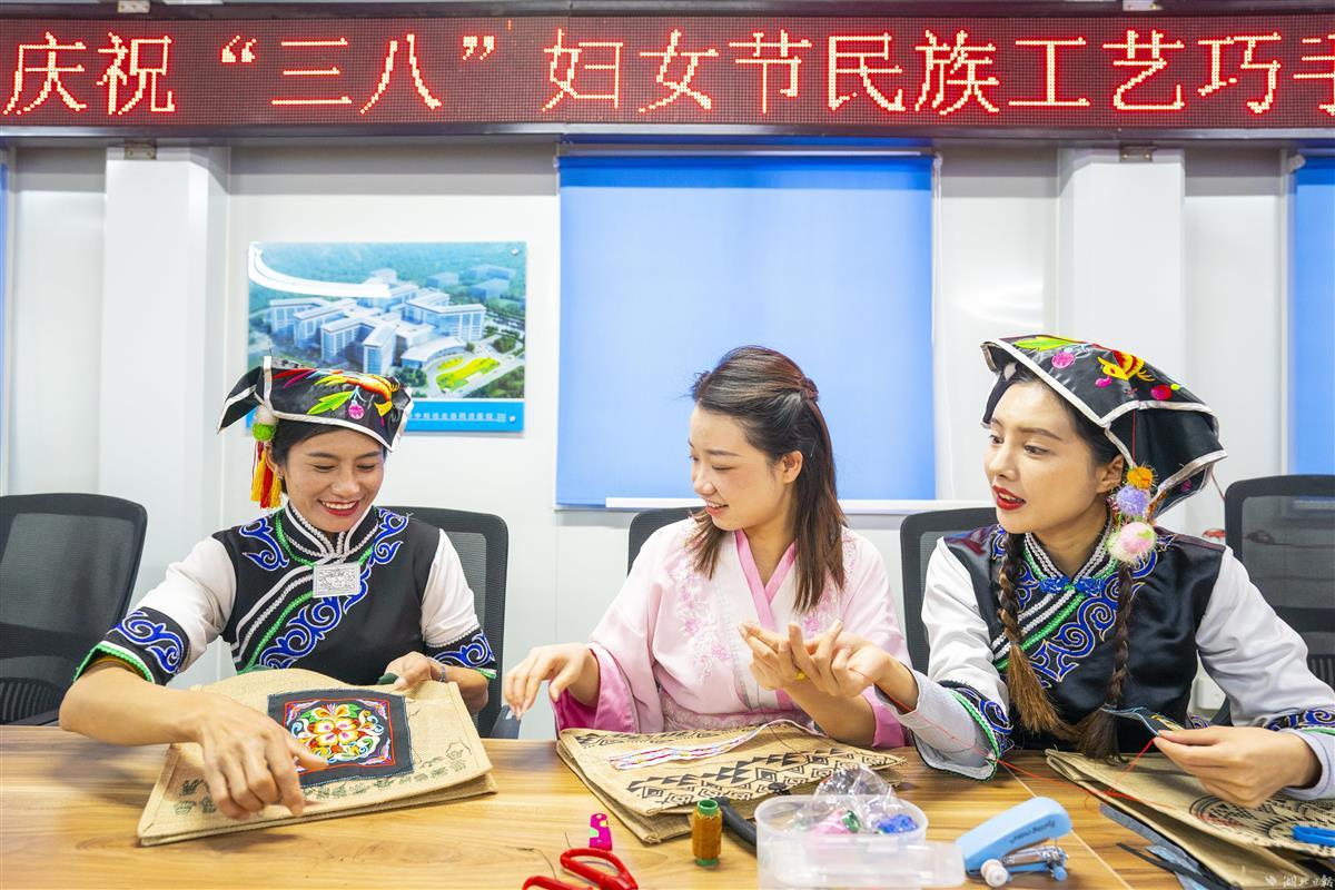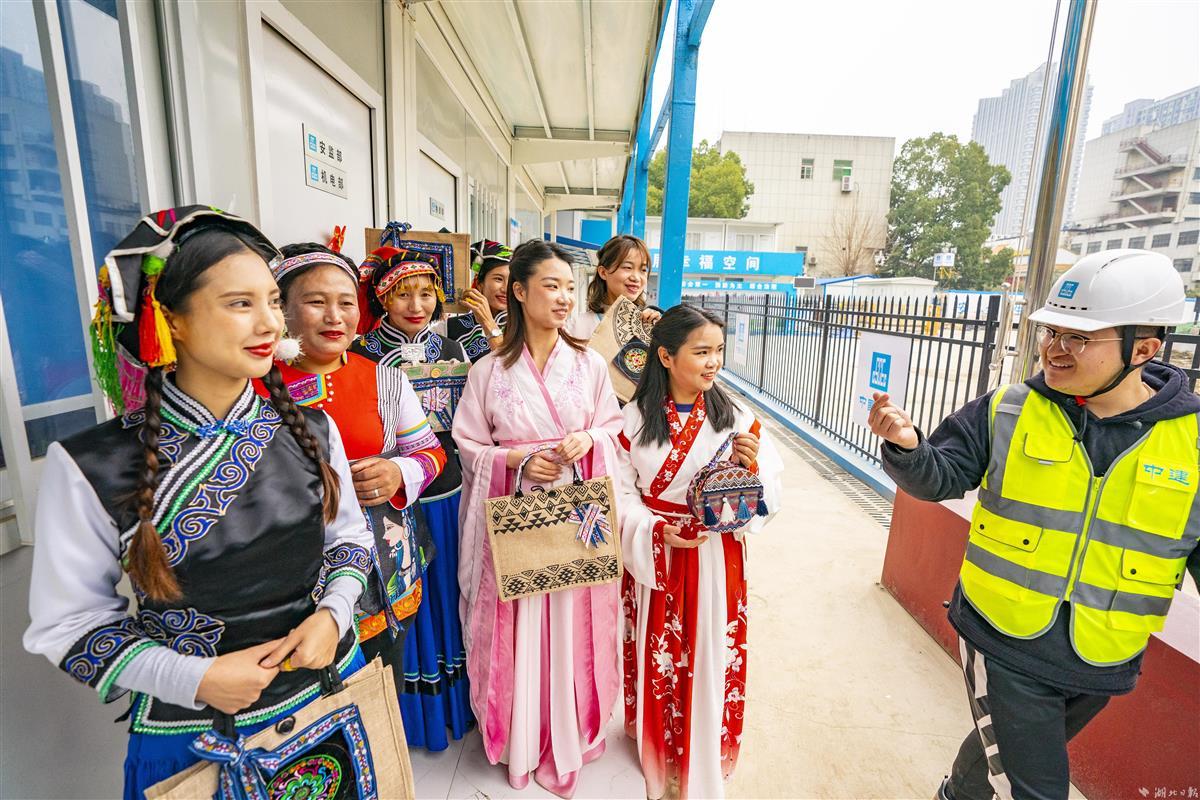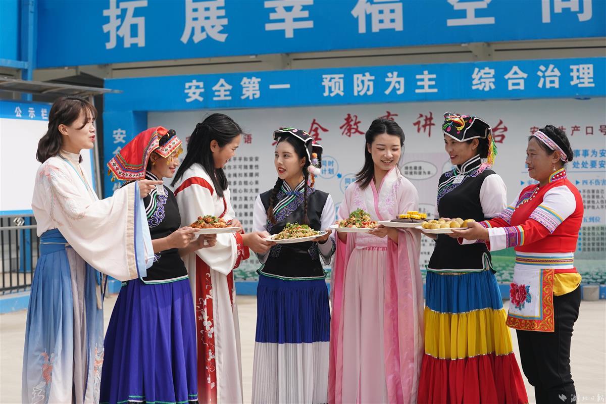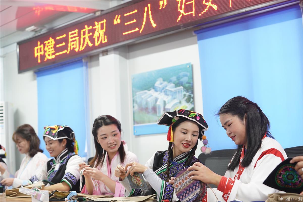 当日,武汉市优抚医院扩建(康复综合大楼)项目生活区,来自中建三局总承包公司多个重点工程项目的彝族、侗族、布依族的10余名女性建设者代表,身着靓丽的民族服饰,欢聚一起制作民族手工艺品,烹制民族佳肴,以特殊的形式与汉族同事共庆国际劳动妇女节。据悉,该公司目前有1500余名女性管理人员及工友,在施工生产、项目管理、党建共建、后勤保障等各个岗位上贡献巾帼新力量,绽放巾帼新风采。(湖北日报全媒记者魏铼通讯员谢杰夫朱佩摄)