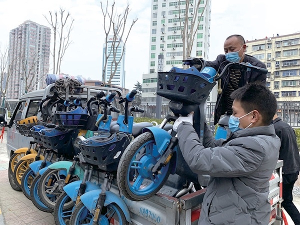 2月28日,市城管支队联合茅箭区五堰街道综合执法中心,对违法乱停的共享单车进行拖移、暂扣,同时约谈共享单车企业负责人。
