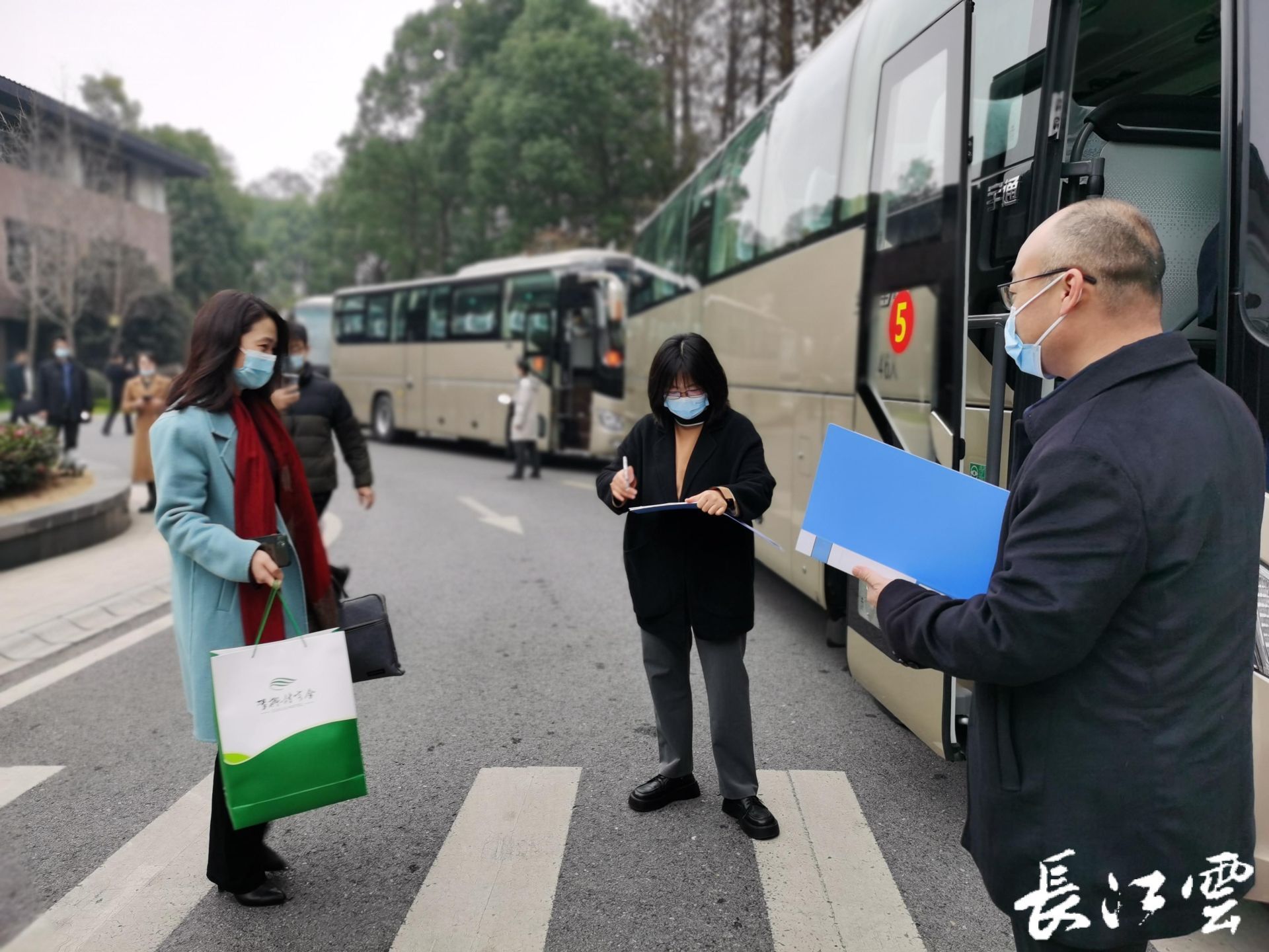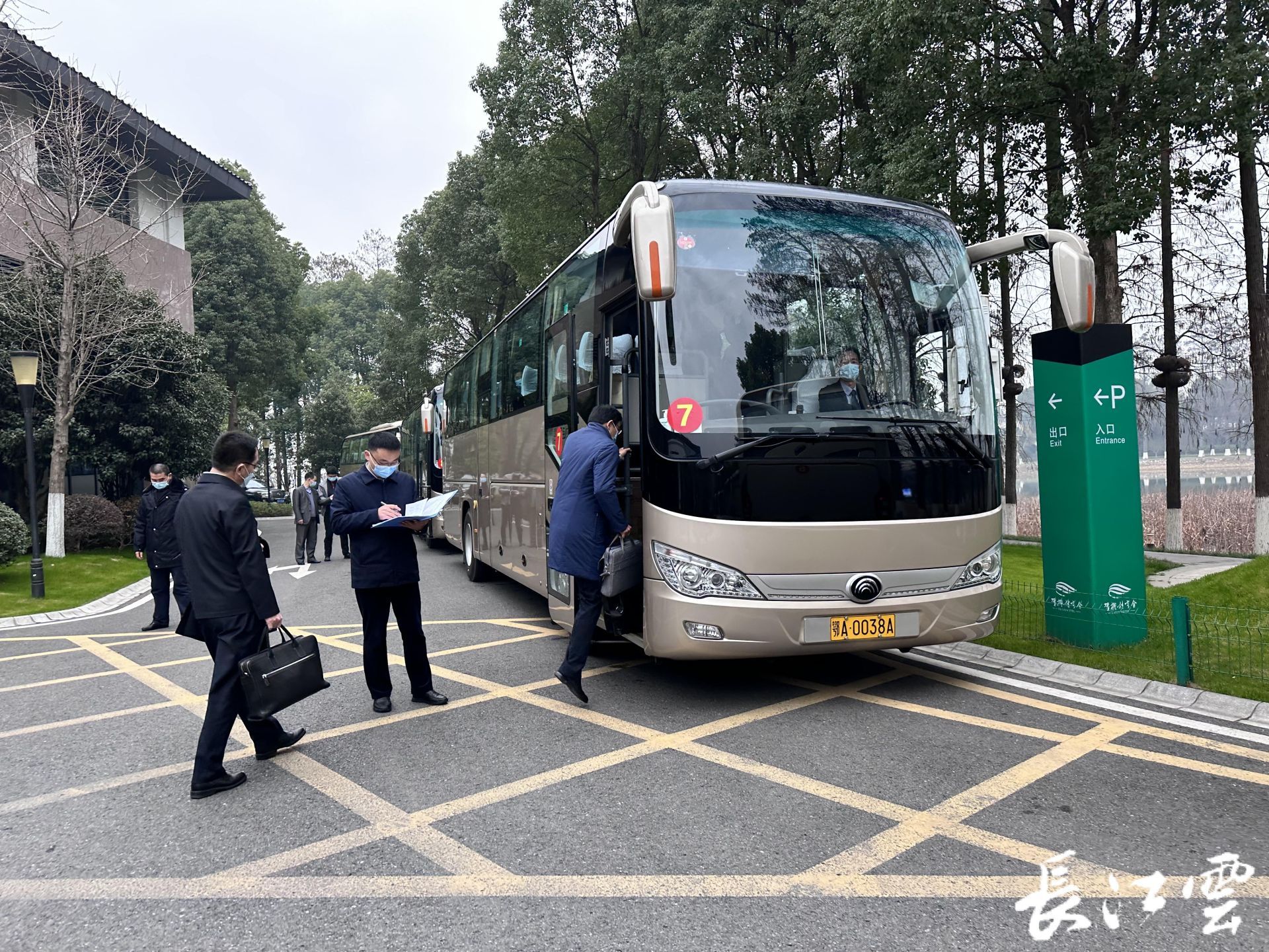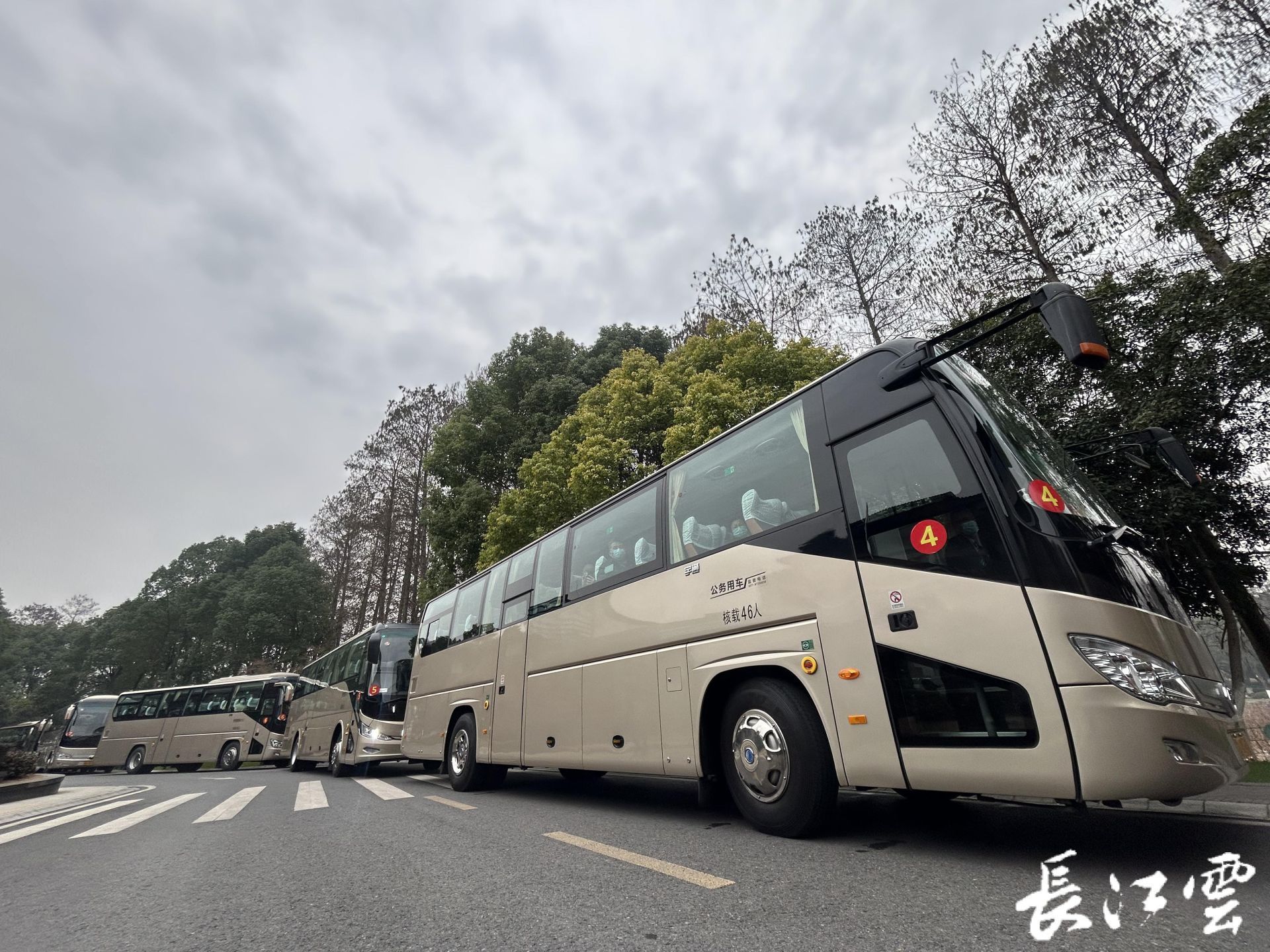 今天(3月3日)上午7点58分,100名在鄂全国人大代表从东湖翠柳客舍乘坐大巴车,前往武汉站。他们即将乘坐高铁赴京,参加于3月5日开幕的十四届全国人大一次会议。