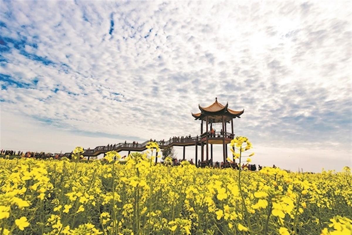 荆门市沙洋县张池农耕文化体验园,被誉为“中国最美”的油菜花海。园内不仅可以赏花、拍照、观景,还可以住农家屋食农家菜,集花海观光、休闲娱乐、农家采摘、科普宣传、文化展示于一体。70万亩油菜花盛开,园内高低错落的油菜花,连成一片,微风拂过,金色花海泛起波澜,仿佛一个“世外桃源”。
