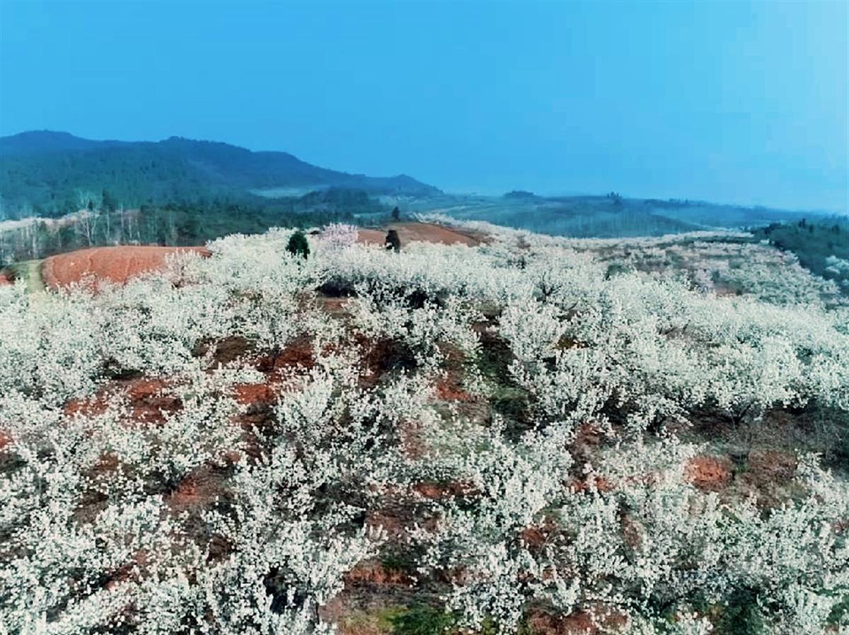 大幕乡万亩野樱,学名叫“山樱花”,俗称“野樱花”“古樱花”,先开花后长叶,极具观赏和研究价值,一般花期为3月到4月中下旬。大幕山区野樱花树现存近万株,大的有2尺围,树龄有五、六十年,大幕山野樱花群落数量之多、分布之密集,实属罕见。