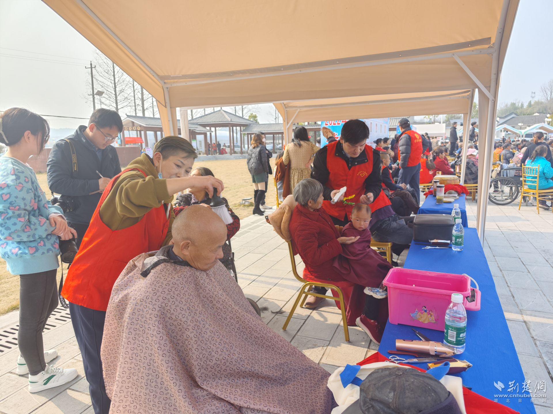 志愿服务集市免费为村民提供理发服务。曹霓 摄