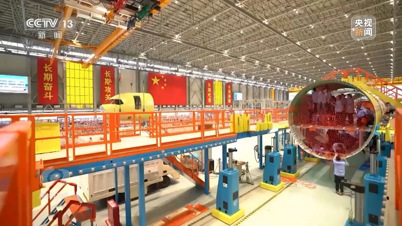 位于上海的中国商飞总装制造中心,车间里的工人们正在最新一架C919飞机前忙碌着。在过去的2022年,国产大飞机C919取得举世瞩目的成就,获颁型号合格证,交付全球首家用户,开启验证飞行,踏上了市场化、产业化发展的新征程。研制国产大飞机,正是党中央面向世界科技前沿、面向经济主战场、面向国家重大需求作出的重大决策。
