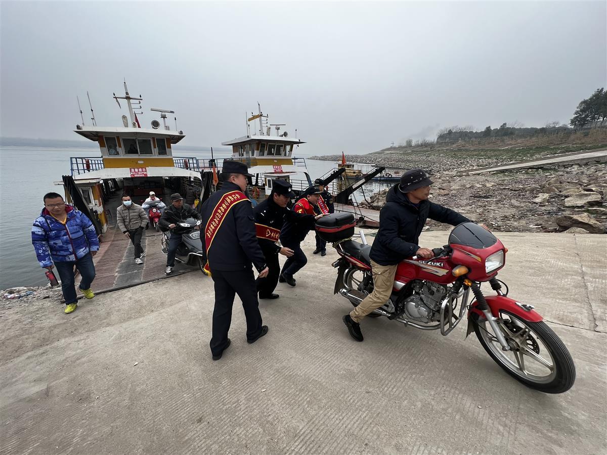 “真是太感谢你们了”。活动期间,民警在帮助过渡乘客搬运大件物品上船时,一红色摩托车下船,因渡船剧烈摇晃导致该摩托车侧滑倒地,民警立即上前询问车主情况并帮助车主将摩托车扶起,受到了车主的感谢和群众的赞许。