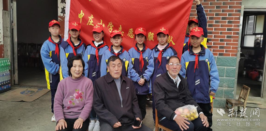3月5日上午9时,中庄小学组织了“关爱孤寡老人、传承雷锋精神”志愿活动。志愿者们在陈校长的带领下,来到老人的家中,为他们送上牛奶、水果等慰问品,每个人脸上都露出了灿烂的笑容。 (程雅思)