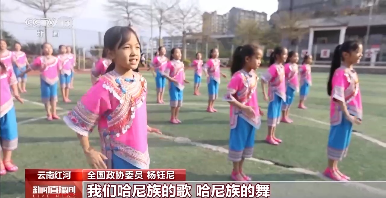 全国政协委员 杨钰尼:教孩子跳一些节奏鲜明、动感一点的舞蹈,他们提起兴趣来以后,我们再告诉他们,你看我们融入了我们哈尼族的歌,哈尼族的舞。