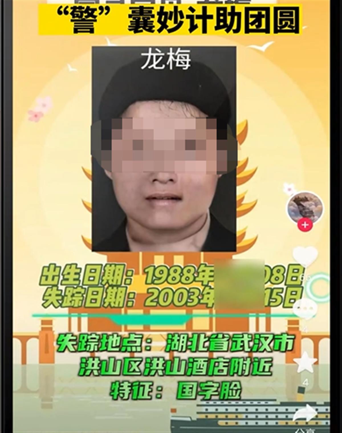 “既然我们找她这个方法行不通,那让她来找我们吧!”王保库突然灵光闪现,“我们可以把寻亲信息公布在短视频平台,让龙梅来到我们。”随后,王保库协助龙飞在短视频平台上发布了龙梅的照片和信息,并留下了手机号,随后联系相关平台进行推送。