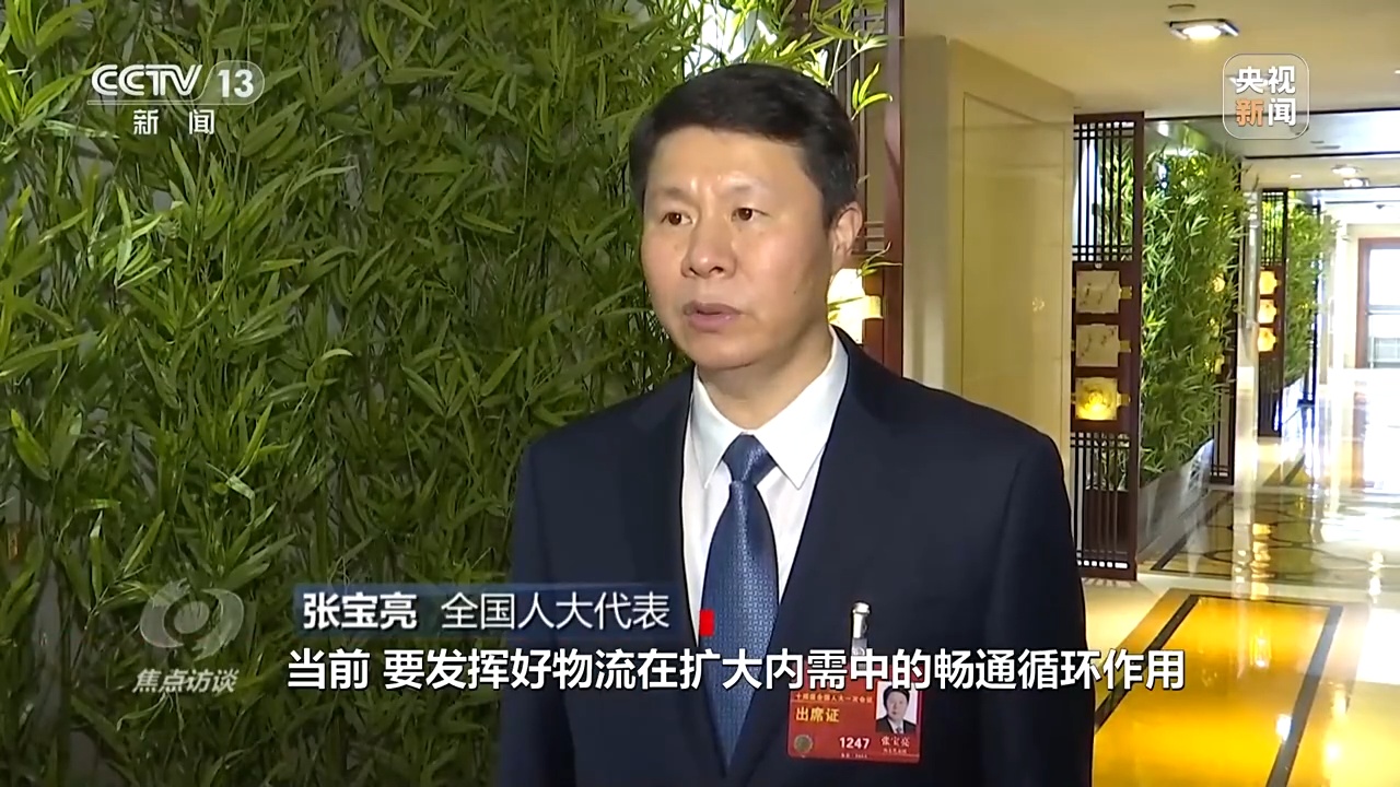 全国人大代表 张宝亮:当前,要发挥好物流在扩大内需中的畅通循环作用和供给侧结构性改革中的支持保障作用,为稳住经济大盘、实现高质量发展提供有力支撑。近年来,我们以现代物流发展为牵引,推动产业链、服务链、供应链、价值链贯通发展、协同发力。