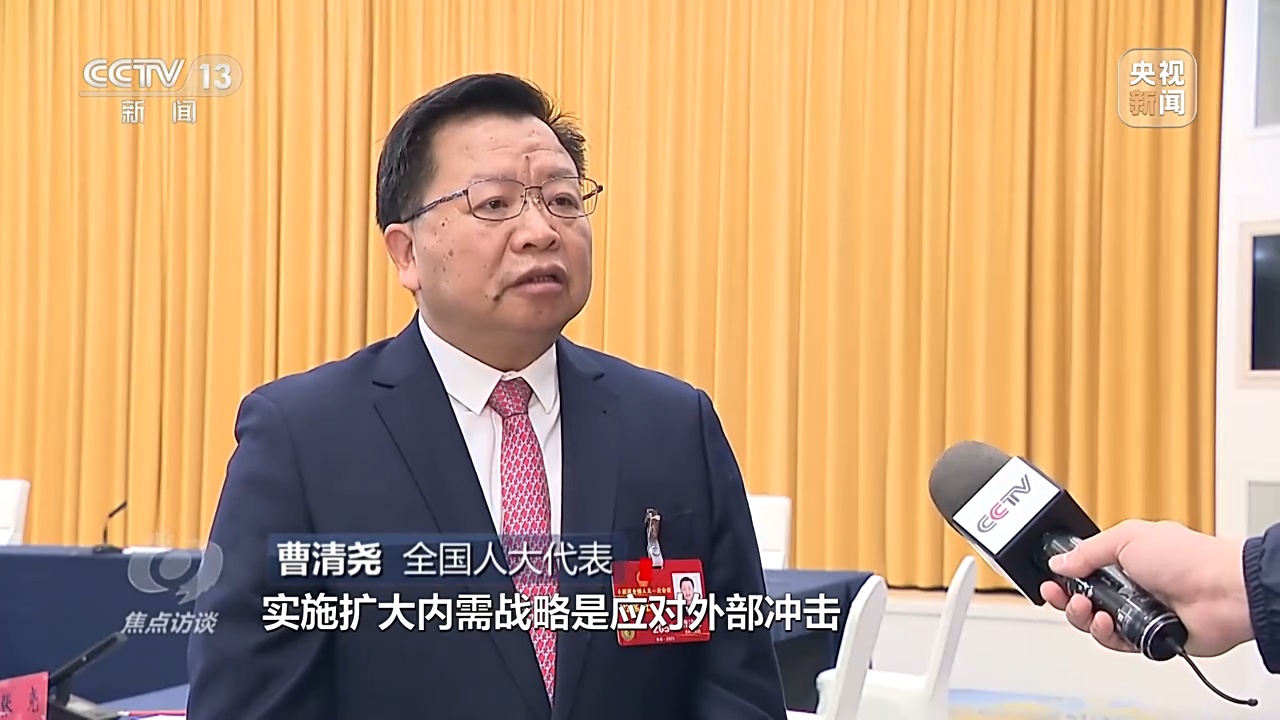 全国人大代表 曹清尧:实施扩大内需战略是应对外部冲击、稳定经济运行的有效途径,推动供给侧结构性改革是实现高质量发展的治本之策。把实施扩大内需战略同深化供给侧结构性改革有机结合起来,则是积极应对国内外环境变化、增强发展主动性的长久之策。