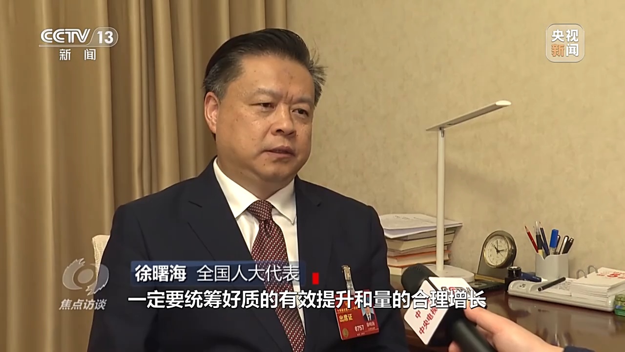 全国人大代表 徐曙海:总书记强调高质量发展中一定要统筹好质的有效提升和量的合理增长,十分具有指导意义和现实意义。在新时代,在我们强调效益优先的前提下,要注重质的提升。