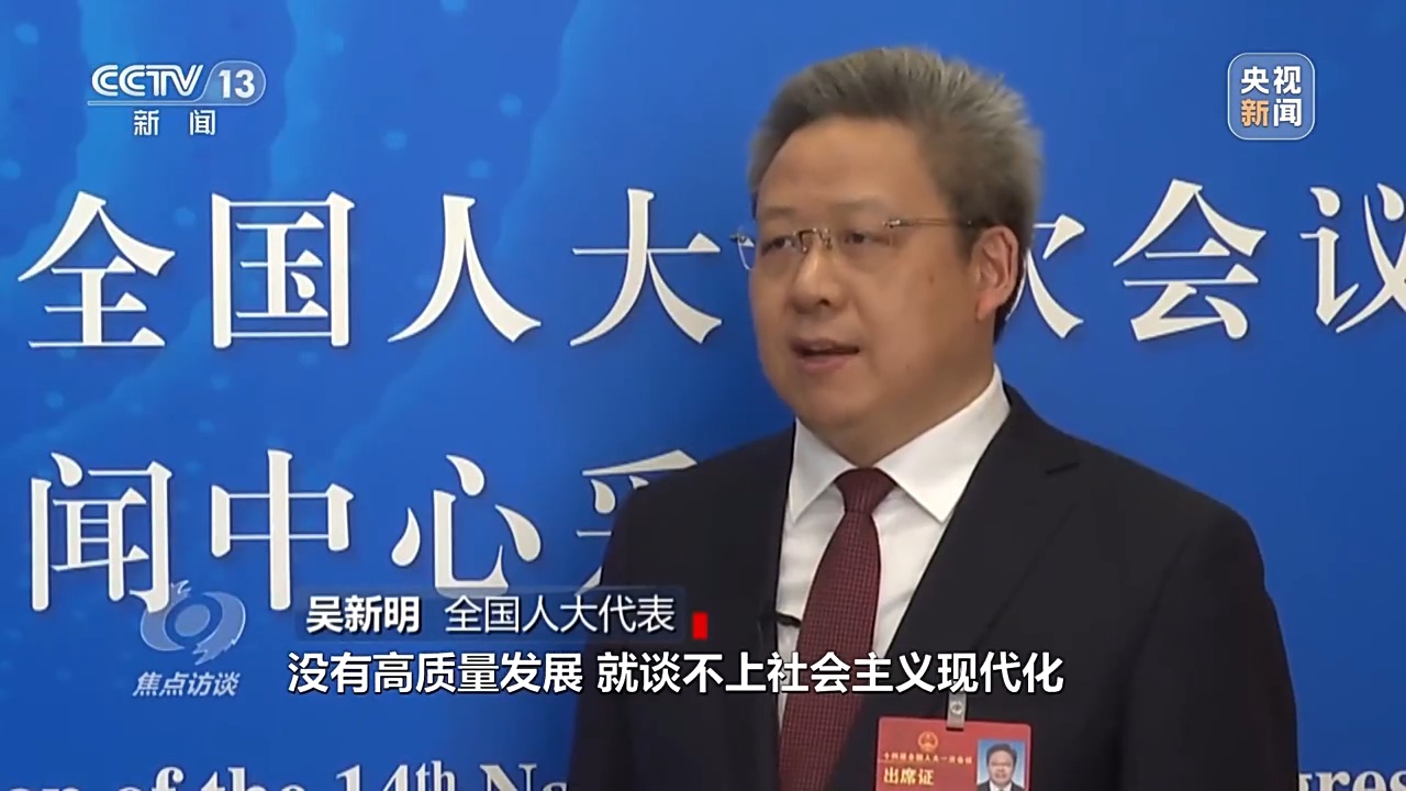全国人大代表 吴新明:总书记深刻指出,没有高质量发展,就谈不上社会主义现代化。这告诉我们,高质量发展不是一时一地的要求,而是所有地区必须长期坚守的根本遵循。