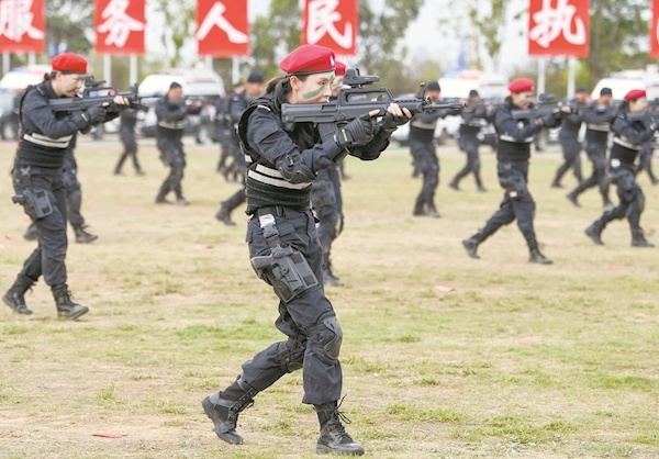 特警训练场上,新参警的10名女子特警队员正在训练。列队,持枪,年轻的她们,将从这里起步,书写青春奋斗的篇章。