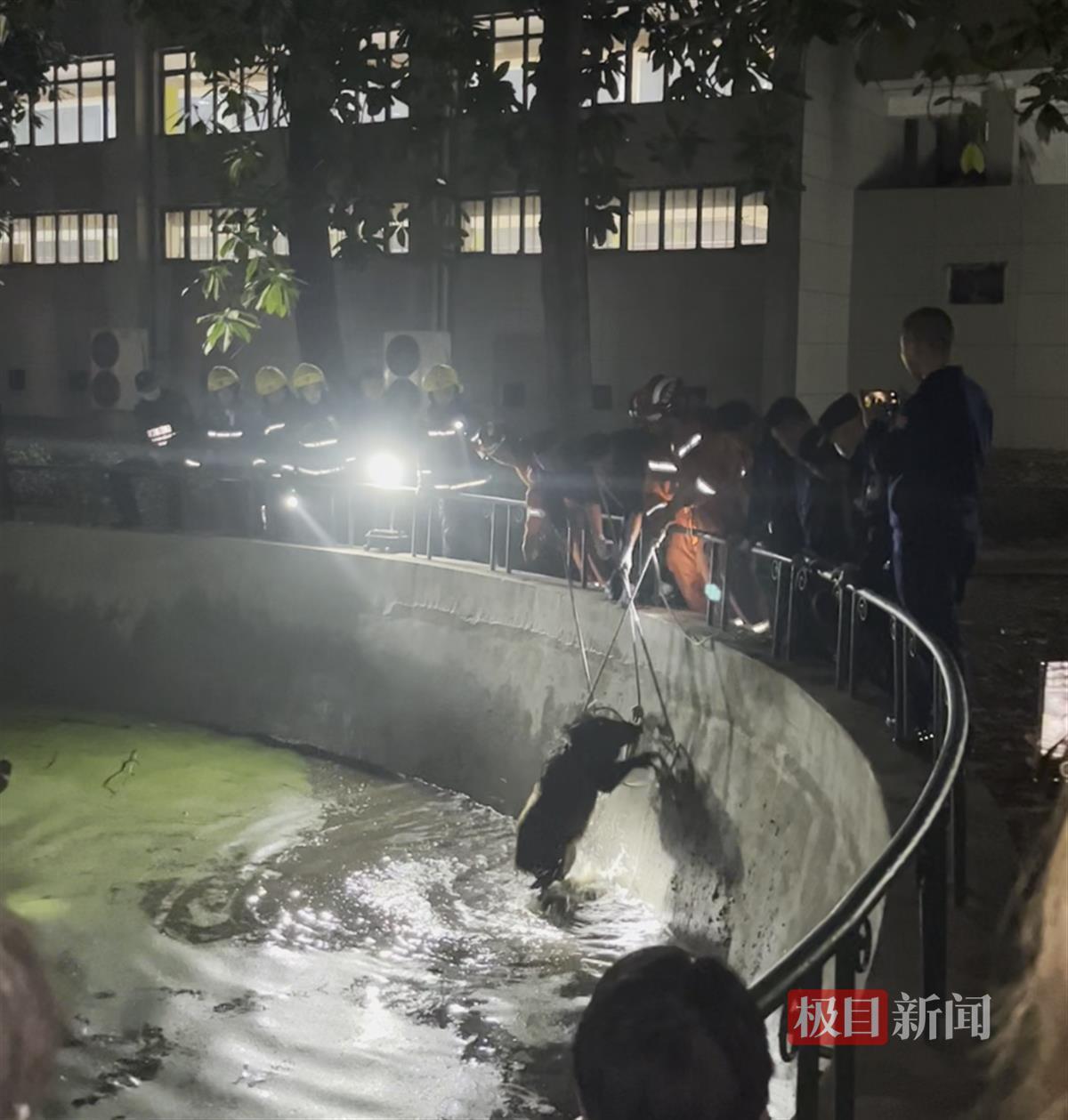 当晚8时许,武汉市消防救援支队119指挥中心接到报警后,立即调度关山消防救援站消防员赶赴现场处置。消防员到场后,只见景观水池中有一头野猪正在嚎叫,现场围满了学生,学校保卫处工作人员与园林部门、警方正在商议如何将野猪救起。