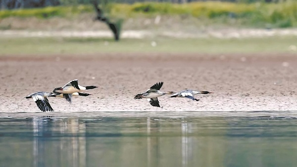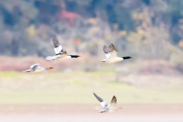 远安沮河国家湿地公园,中华秋沙鸭自由飞翔 杨春芳供图