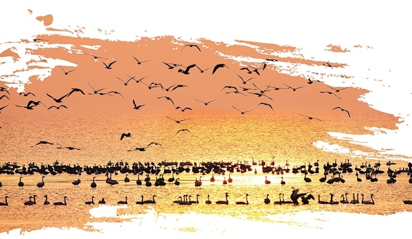 ◀湖北最大的小天鹅越冬团队在黄梅龙感湖 (湖北省林业局供图)