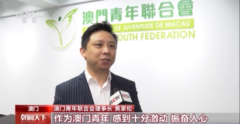 澳门青年联合会理事长 黄家伦:习近平主席全票当选国家主席和中央军委主席,作为澳门青年感到十分激动,振奋人心。因为习主席一直关心我们澳门青年的成长和成才。在新时代新征程上,澳门青联将一如既往地秉持爱国爱澳宗旨,继续做好青年的引路人的角色,带领青年积极融入国家发展大局,为民族复兴贡献青春的力量。