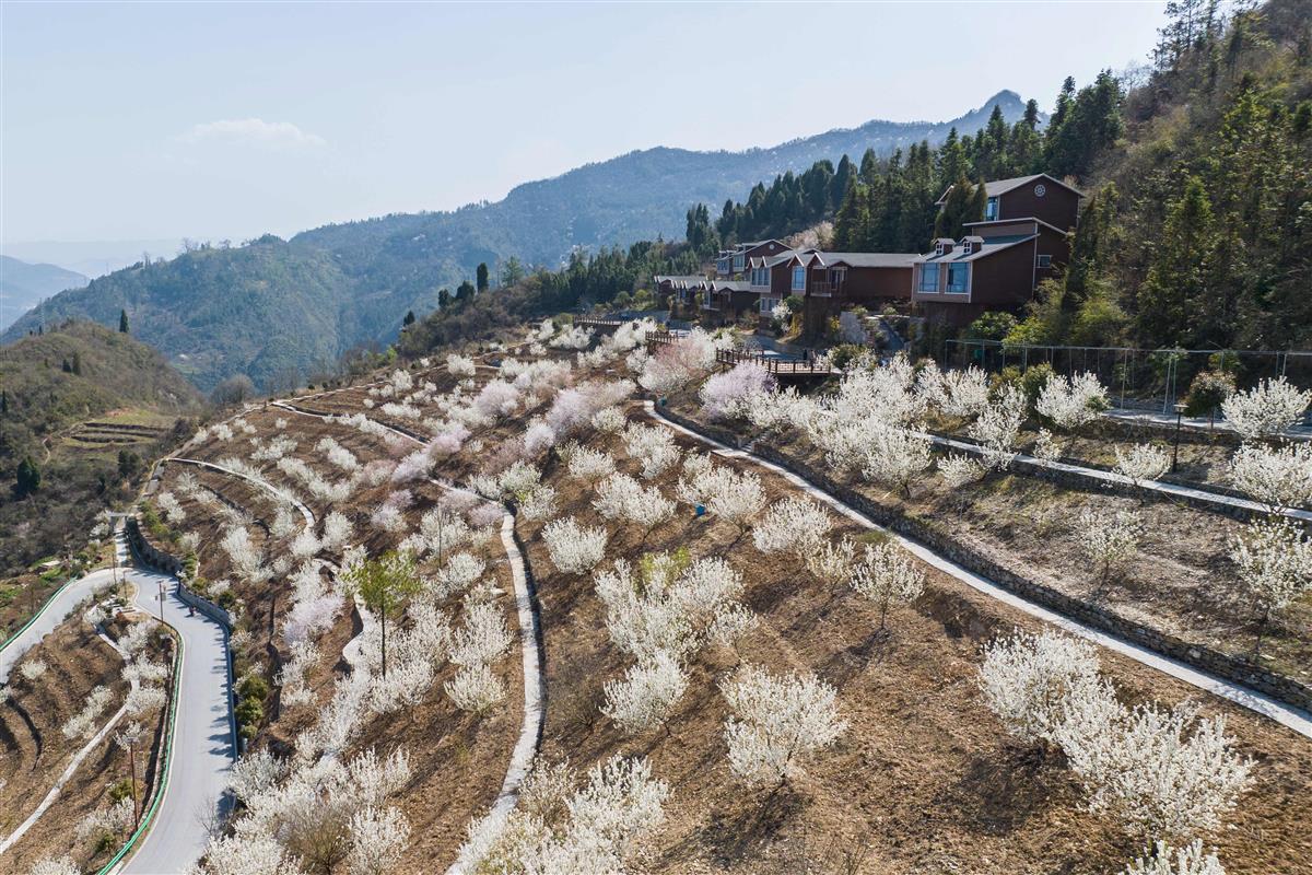 3月10日,湖北省襄阳市保康县城关镇小沟村百亩樱桃花盛开,一串串洁白的花朵挂满枝头,漫山遍野的樱桃花扮靓山村,吸引不少游客前来观赏。