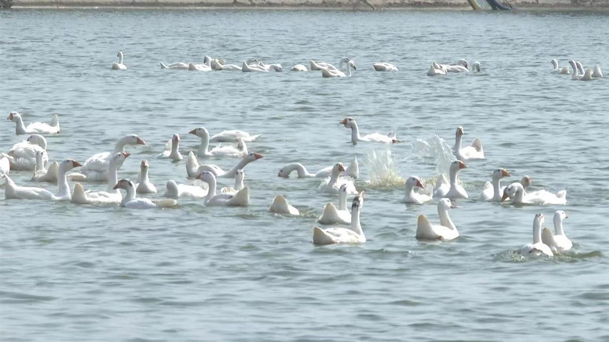 走进王冬东的养鹅场,看到一群三花鹅正在水中嬉戏,随着王冬东的一声召唤,鹅群迅速上岸觅食。据介绍,他养殖的三花鹅属于肉用型鹅种,养鹅投资小,利润高,三个月就可以出栏。看到马上就能出栏的1500只鹅,他的脸上露出幸福的笑容。