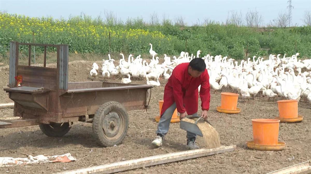 在湖北襄阳宜城市孔湾镇刘湾村一处鹅场,鹅叫声此起彼伏。在优美的环境里,大白鹅十分放松,或低头觅食,或悠闲踱步。鹅场主人王冬东笑吟吟地从鹅群中走出来:“我们周边水资源丰富、草长得也好,鹅子吃了长膘,今年又是个丰收年。”