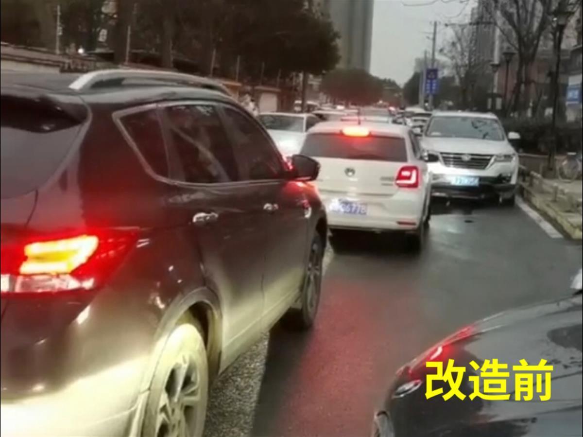 丰园路地处武汉市洪山区和平街道,其北洋桥西路至丰福路路段全长约400米,道路周边有天丰花园、景胜花园等多个居民小区,平日里车流、人流量较大,尤其是早晚高峰时段,叠加周边多所学校送学车流,交通拥堵突出,加上沿线时常有车辆违停,群众多有抱怨投诉。日前,洪山区交通大队经过多次实地调研发现,该路段因路幅宽窄不一,道路中段由宽变窄,四车道缩减为两车道,形成交通“瓶颈”,当车流量突然增大时,易造成潮汐式“梗阻”。