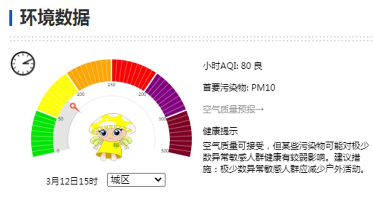 3月12日截至15时,武汉市城区空气质量指数为80,良好。空气质量预报显示,武汉遭遇短时污染空气后,后几天空气质量会逐渐好转。