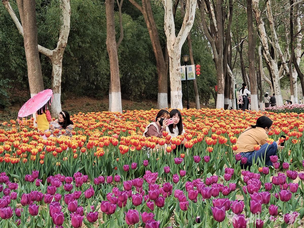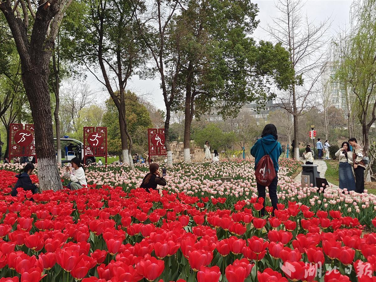 阳春三月,百花盛开。连日来,位于武汉经开区的汤湖公园,郁金香闪亮登场,进入最佳赏花期,红色、粉色、紫色、黄色、白色、粉白相间、黄红相间的郁金香竞相绽放,扮靓了武汉经开区的春天,也吸引了不少市民前来打卡。