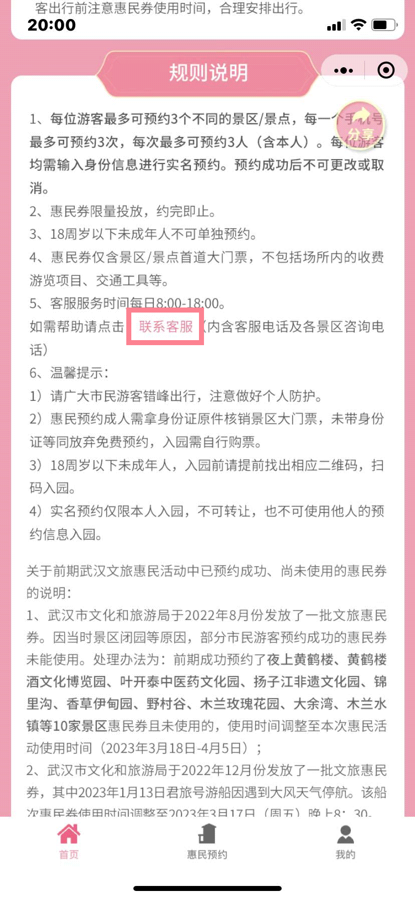 ⑧客服服务时间每日8:00-18:00。如需帮助请点击预约首页:联系客服(内含客服电话及各景区咨询电话)。