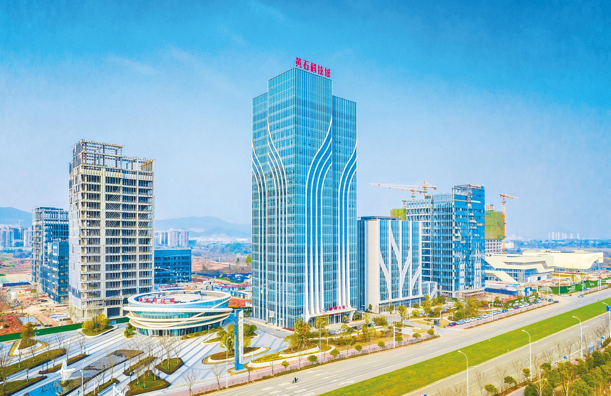 连日来,黄石科创中心二期项目正紧锣密鼓进行玻璃幕墙安装、园林绿化等工作。该项目建成后,将成为黄石高新科技产业引领区、科技成果转化示范基地和创新科技共享体验园区。 (湖北日报全媒记者 薛婷 通讯员 周巍 张春玲 摄)