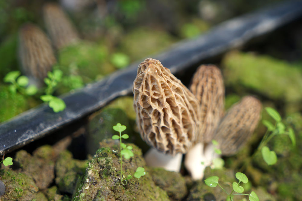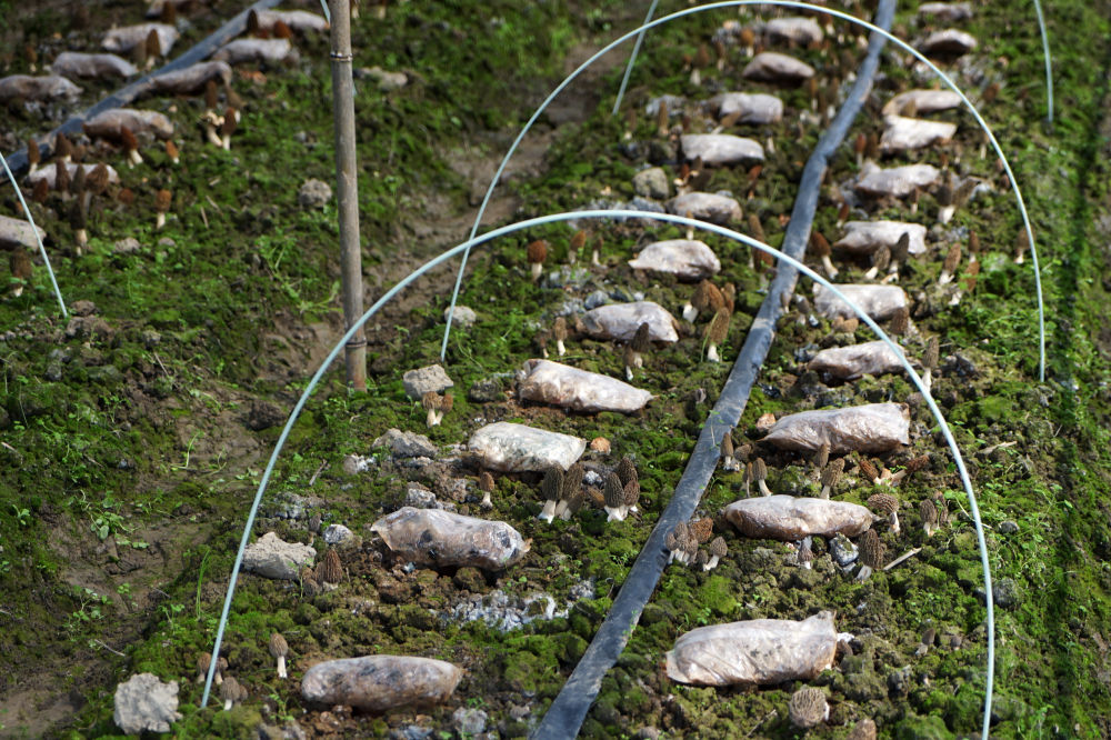 这是3月8日在成都市大邑县新场镇灯笼社区拍摄的大棚里的羊肚菌。新华社记者 尚文意 摄