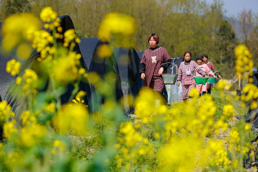 3月8日,成都市大邑县新场镇灯笼社区的村民们采摘完羊肚菌后准备回家休息。新华社记者 沈伯韩 摄